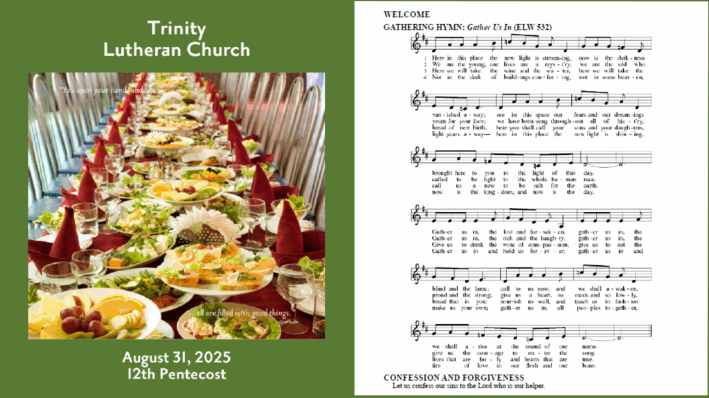 Online Worship Worship Services 12th Pentecost Sunday Worship – Aug 31, 2025 by telcoffice|Published August 26, 2025 Online link: Bulletin: