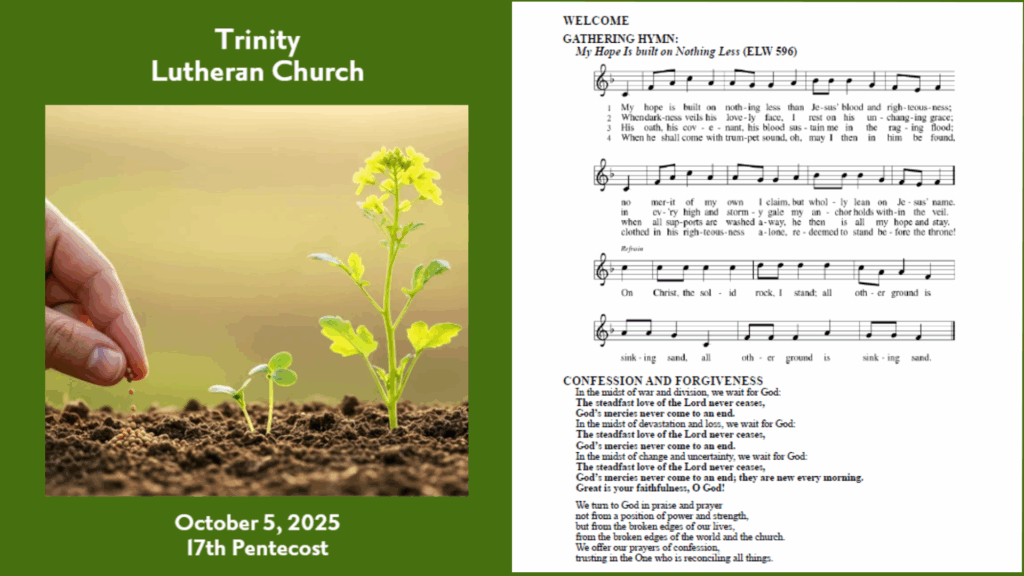 Online Worship Worship Services 17th Pentecost Sunday Worship – Oct 5, 2025 by telcoffice|Published October 1, 2025 Online link: Bulletin: