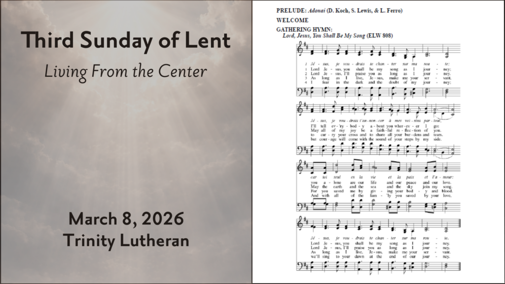 Online Worship Worship Services Lent Three Worship – March 8, 2026 by telcoffice|Published February 25, 2026 Online link: Bulletin: