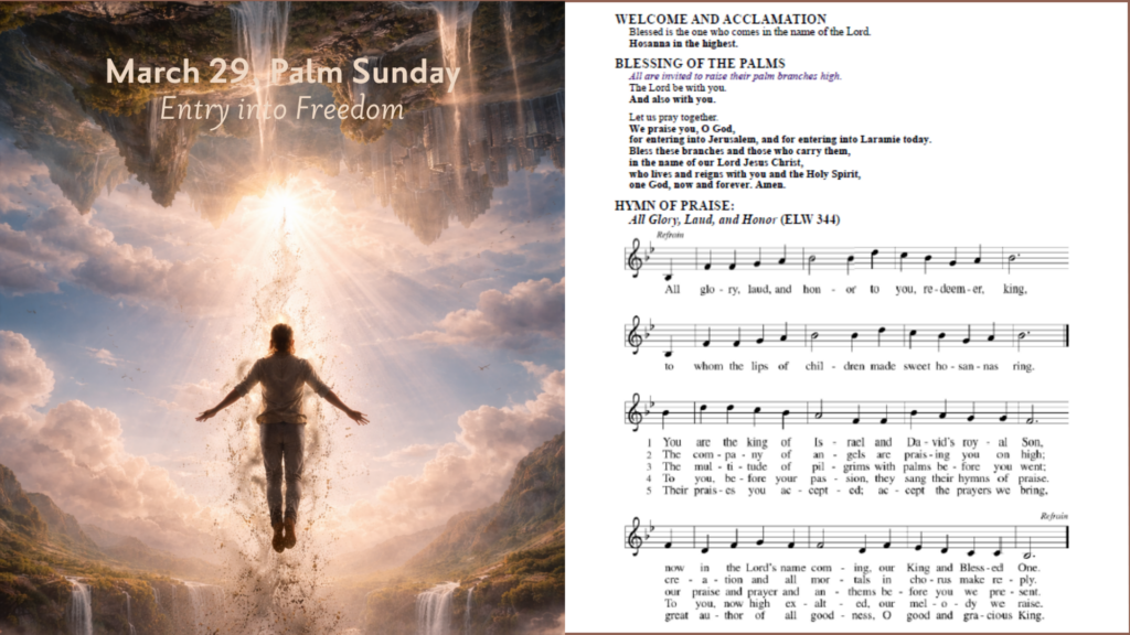 Online Worship Worship Services Palm Sunday Worship – March 29, 2026 by telcoffice|Published March 28, 2026 Online link: Bulletin: