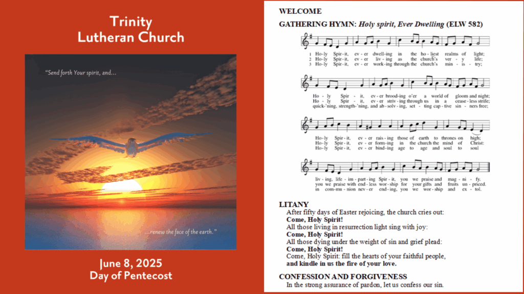 Online Worship Worship Services Pentecost Sunday Worship – June 8, 2025 by telcoffice|Published June 2, 2025 Online link: Bulletin:
