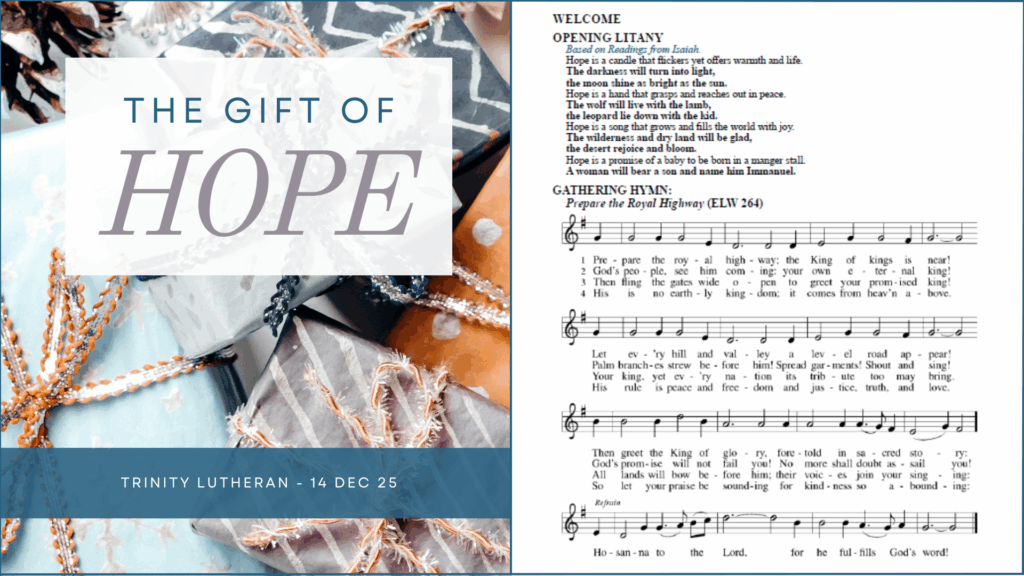 Online Worship Worship Services Sunday Worship – Dec 14, 2025 by telcoffice|Published December 9, 2025 Online link: Bulletin link: