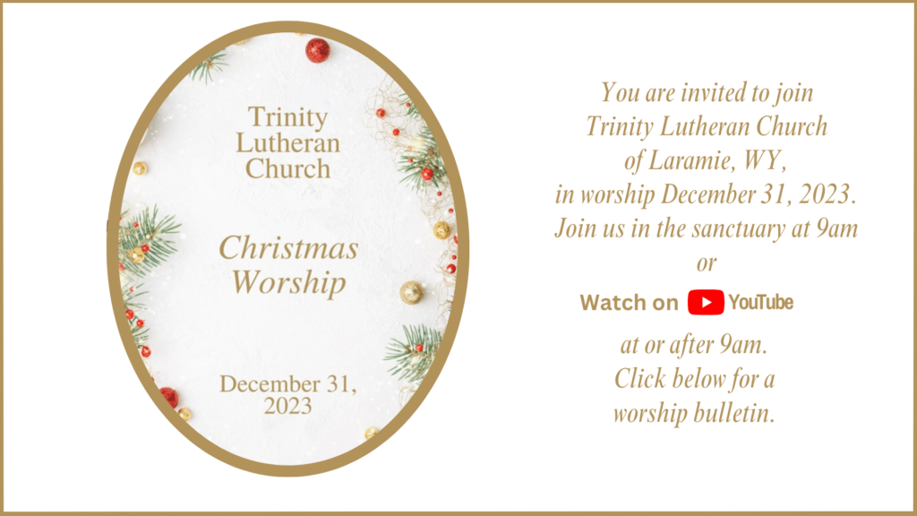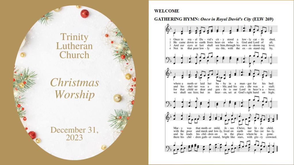 Online Worship Worship Services Sunday Worship – December 31, 2023 by telcoffice|Published December 28, 2023 Online link: Bulletin: