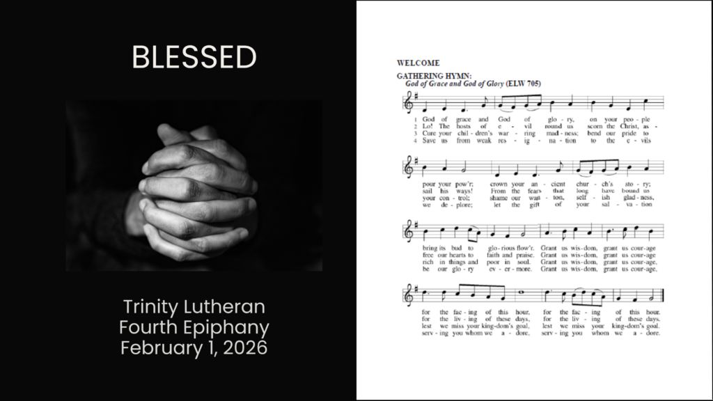 Online Worship Worship Services Sunday Worship – February 1, 2026 by telcoffice|Published January 29, 2026 Online link: Bulletin: