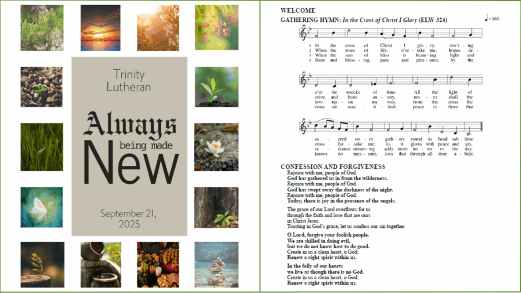 Online Worship Worship Services Sunday Worship – Sep 21, 2025 by telcoffice|Published September 15, 2025 Online link: Bulletin: