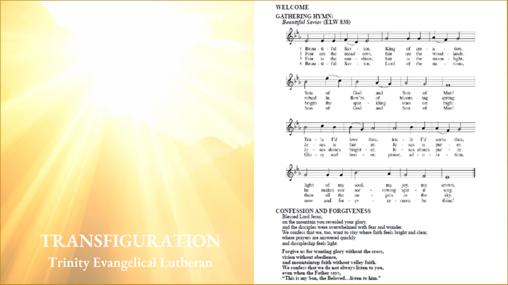 Online Worship Worship Services Transfiguration Worship – February 15, 2026 by telcoffice|Published February 9, 2026 Online link: Bulletin: